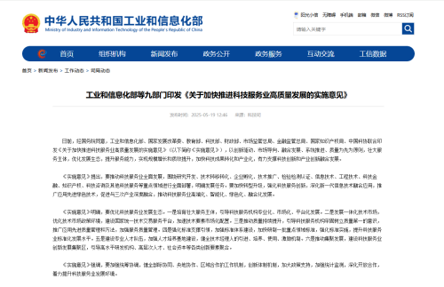 • 工信部等九部門聯合印發《關于加快推進科技服務業高質...